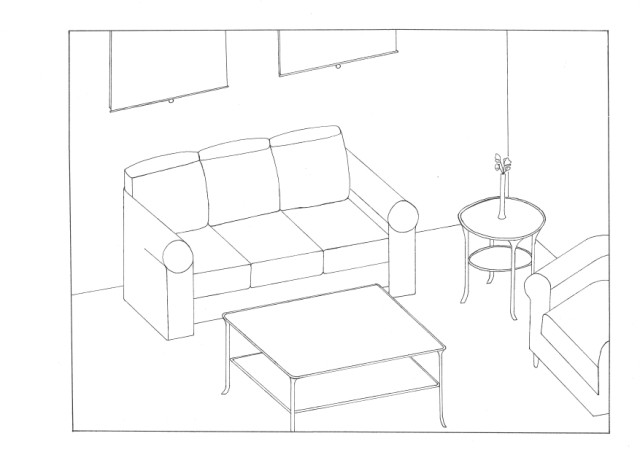 ところどころにある正方形はサイドテーブル、そんで左上の長細いのは本棚です。