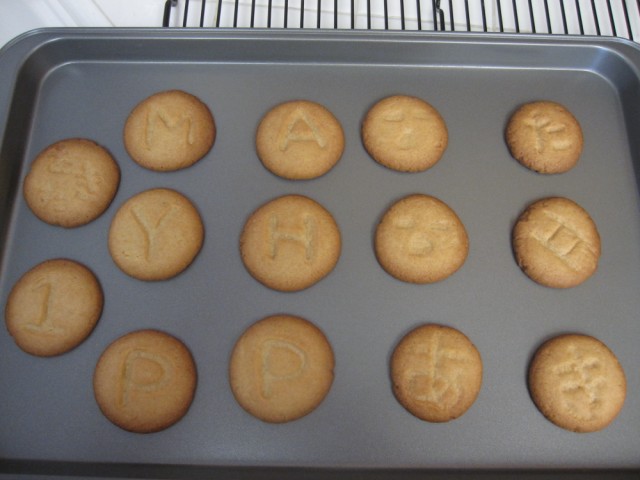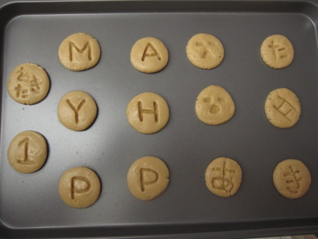 クッキーの形を丸とかにしないで「HAPPY 1 MONTH ANNIVERSARY 5/10」って一文字ずつ型取る。