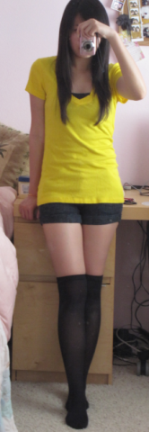 それで今日衣装のこと話してて、上は明るいネオンカラーの無地、下は黒っぽければなんでもいいって言われて、友達と短パンにニースソックス!!!ってことになりましてw