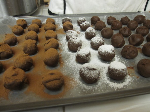 ディップした後は上からココアパウダーとシュガーパウダーをかけることに。
