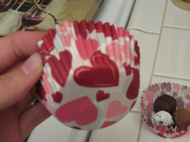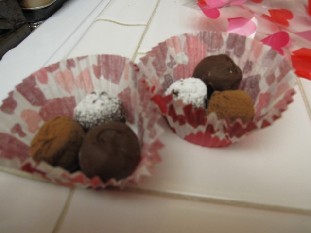 んで一人2個のバレンタインキスチョコ、そして私が作ったトリュフ3種類にすることに。